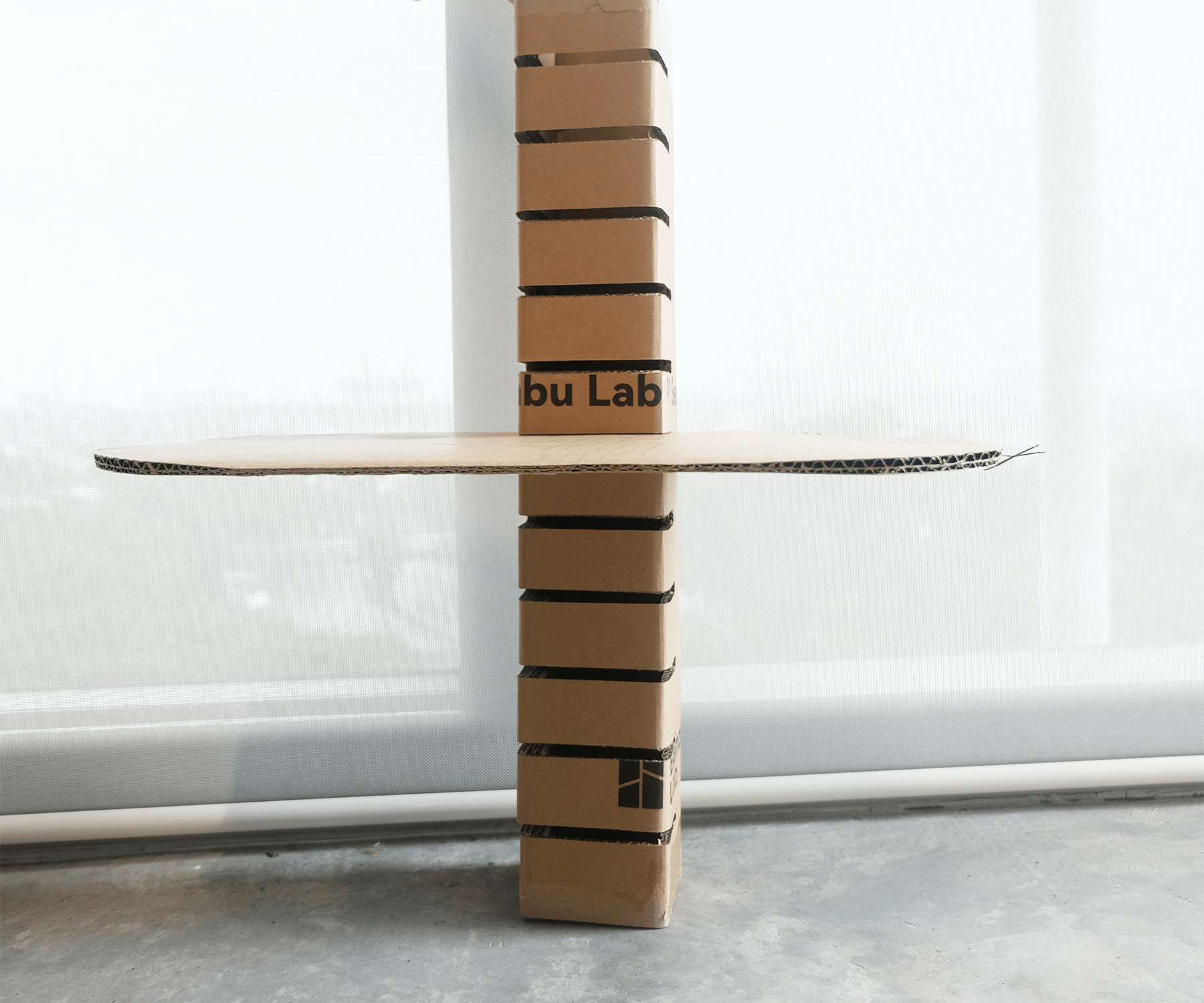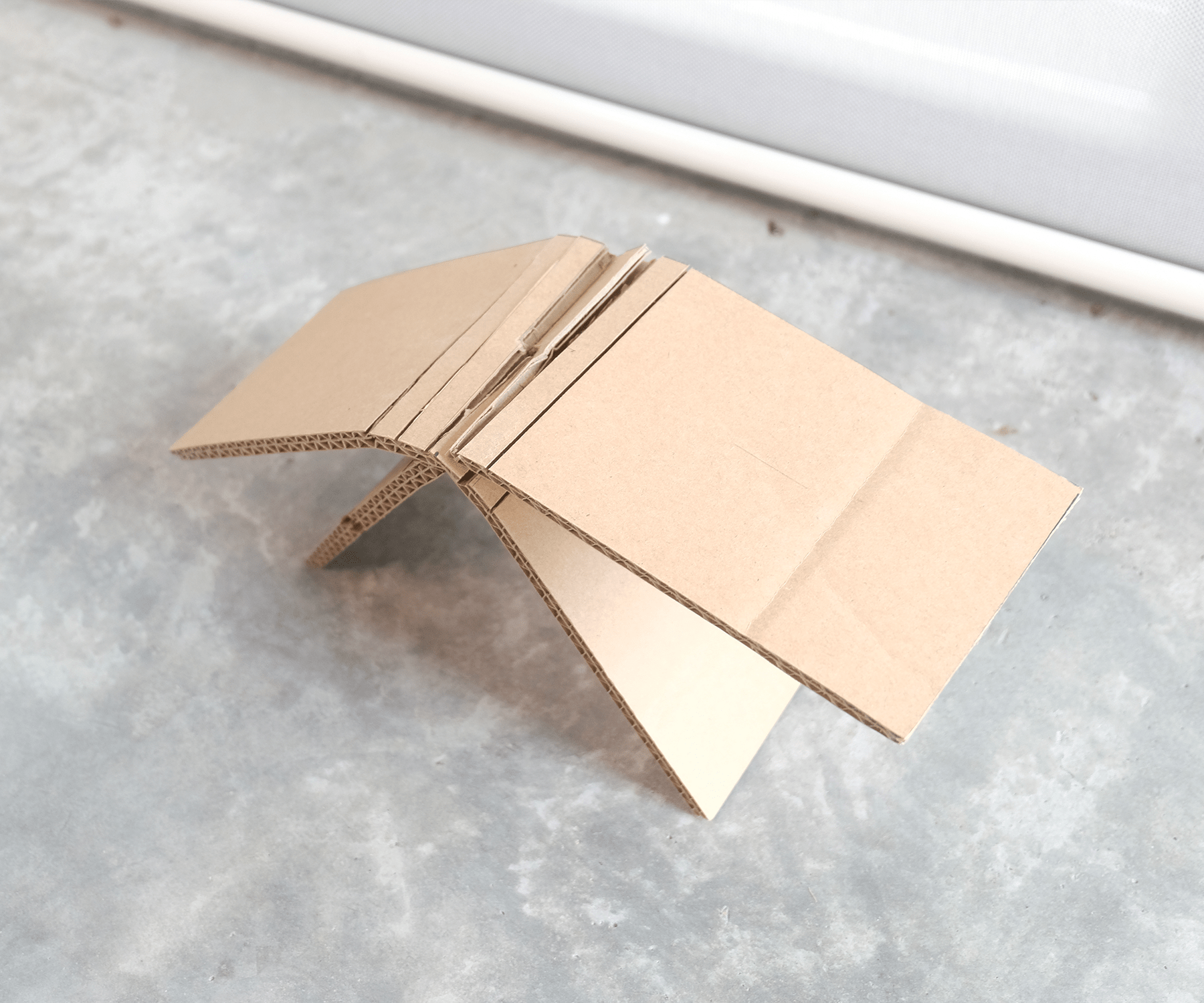 We started small, using whatever cardboard we could find, like single and double-walled sheets, and played around with scoring, slitting, slotting, even peeling apart layers. Early prototypes explored how planes could unfold from one point, and that idea stuck with us. It was playful, a bit unexpected, but opened up a lot of possibilities.
